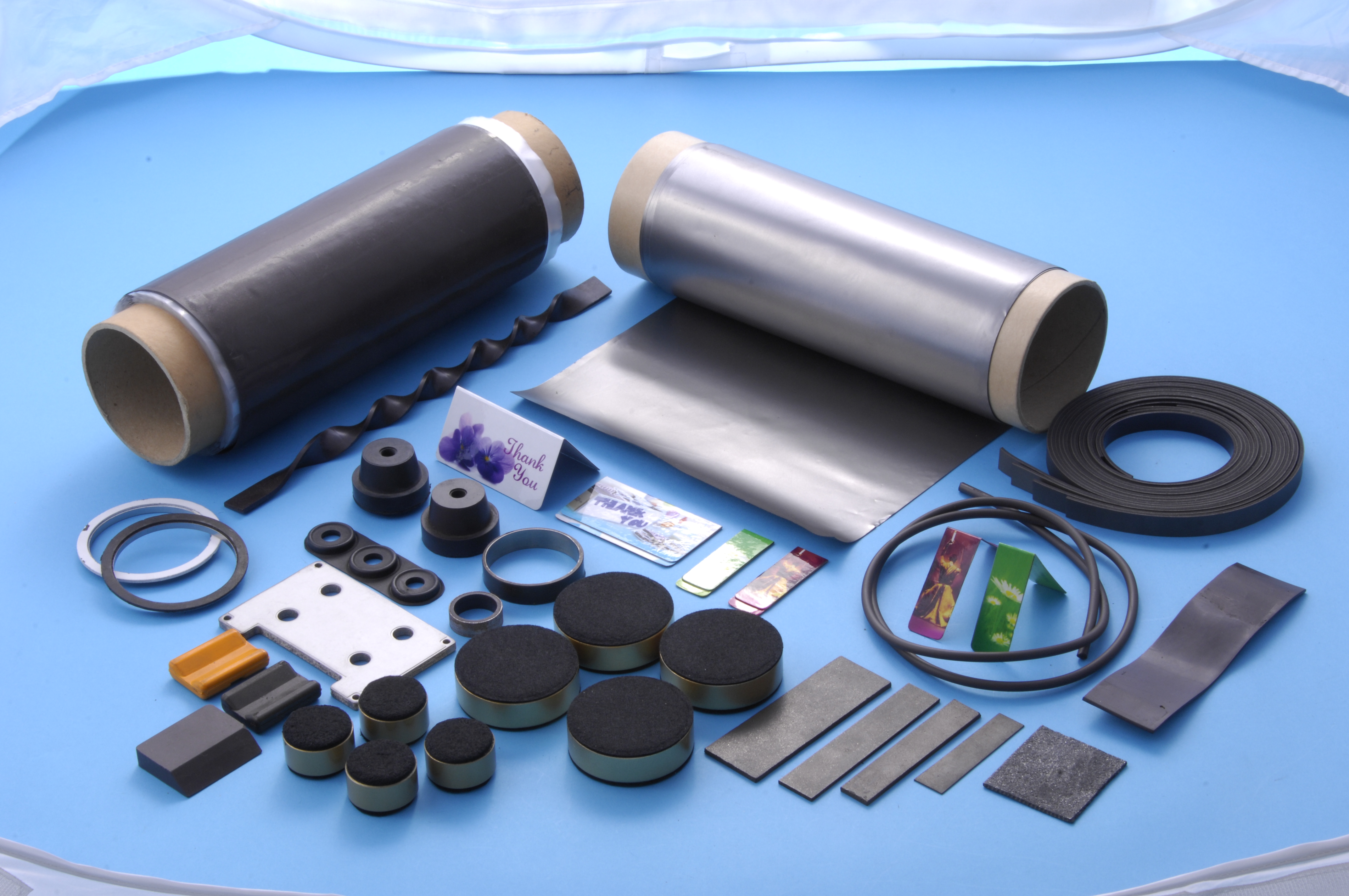 | 主要製品 | 精密ゴム成形品、ウレタン注型製品、ローラースケート用ウレタン車輪、”ポリマネット”ゴム磁石 ゴム磁性材料(ノイズ吸収ゴム) MeDeuS(金属検知機に反応するゴム) |